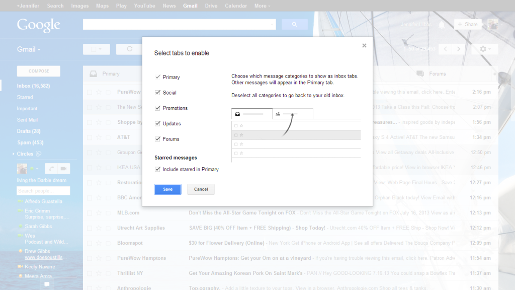 On the surface the change looks pretty simple. Instead of one email stream you now will see three tabs at the top of your email. One is labeled “Primary” – your personal email automatically gets filtered into this one. All of your email received from your contacts goes here.