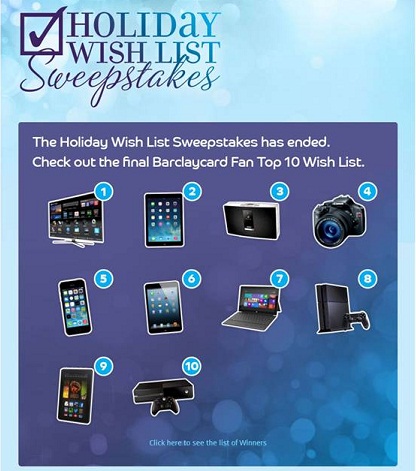At the end of 2013 one of our clients ran a promotion asking people to make their ultimate wish list for the holidays. All items in the top 10 were electronics. We use the the insights from that promotion as a guide when asked what electronics people want as prizes.