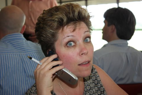 On the phone with a client even at a company party!