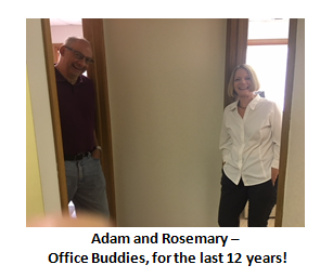 Rosemary, you’ve been an awesome associate and friend for about 20 years and I’m so happy to know you and have worked with you. First you were a client, then a terrific associate. I hope that you and Steve get to do all the things you haven’t had time for. I also hope that we’ll always find time to meet regularly and share a meal and ongoing friendship. Congrats to you on a great career and best wishes for your continued success during the next phase of your life. You have always been – and remain – a great blessing to me!