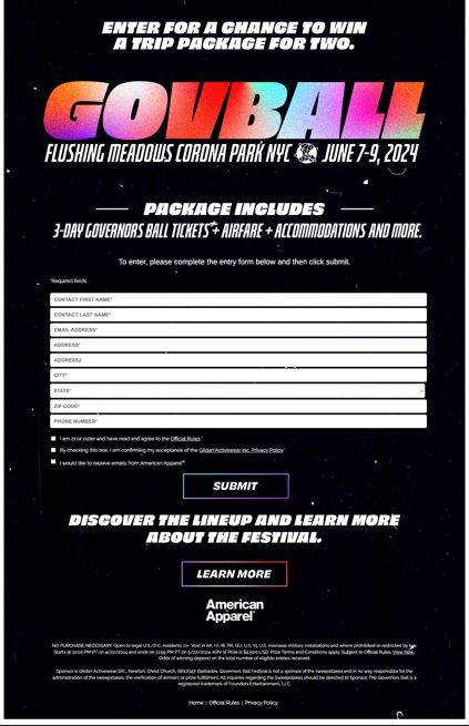 American Apparel Governor’s Ball Festival Sweepstakes