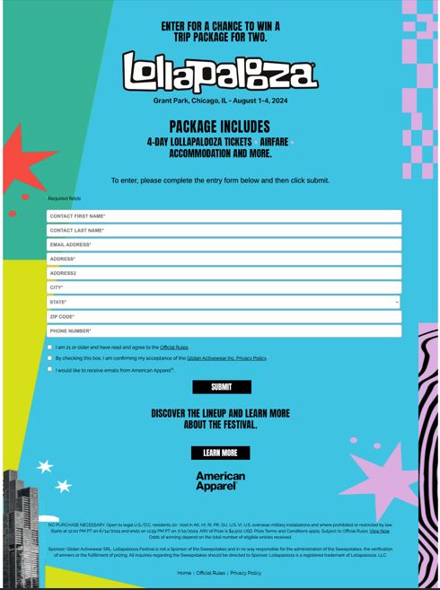 American Apparel Chicago Festival Sweepstakes