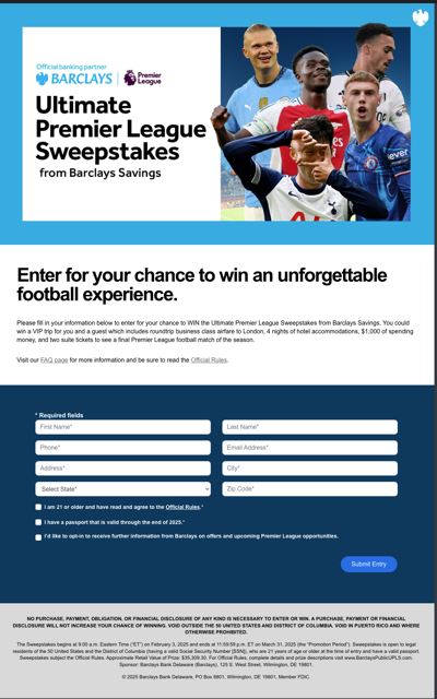 Barclays Ultimate Premier League Sweepstakes
