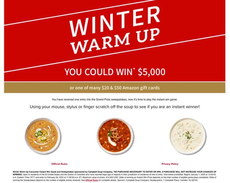 Winter Warm Up Instant Win Game & Sweepstakes