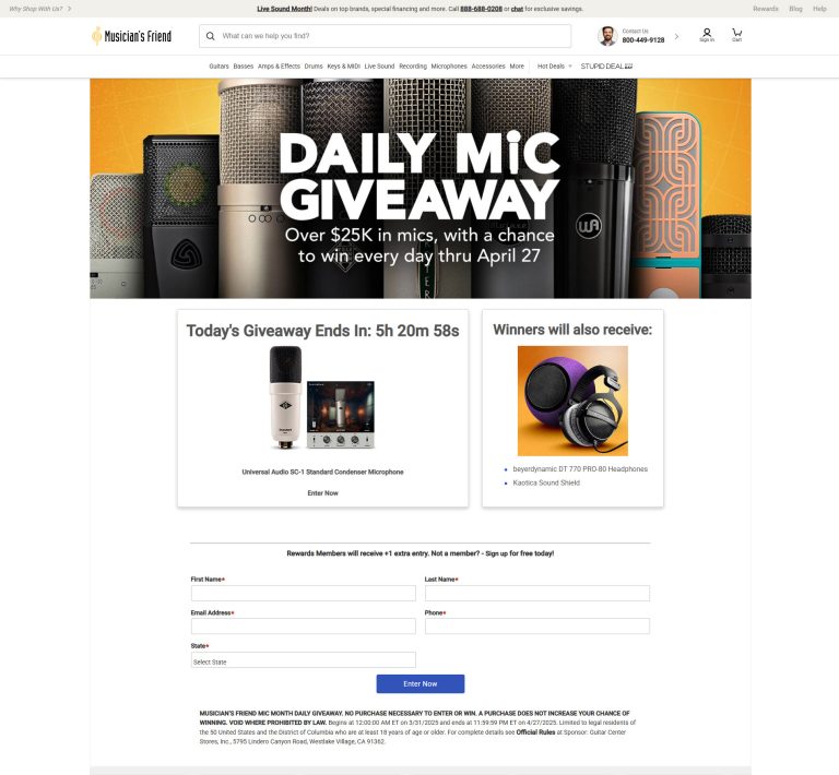 Musician’s Friend Mic Monthly Daily Giveaway